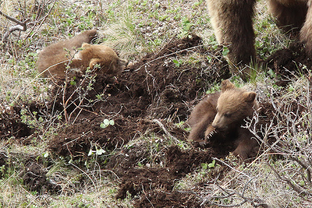 There, scratching in the dirt as they imitated mom, were two first-year cubs.